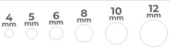 Disponemos de 6 diámetros diferentes para cubrir las necesidades de tu proyecto: 4, 5, 6, 8, 10 y 12 mm.